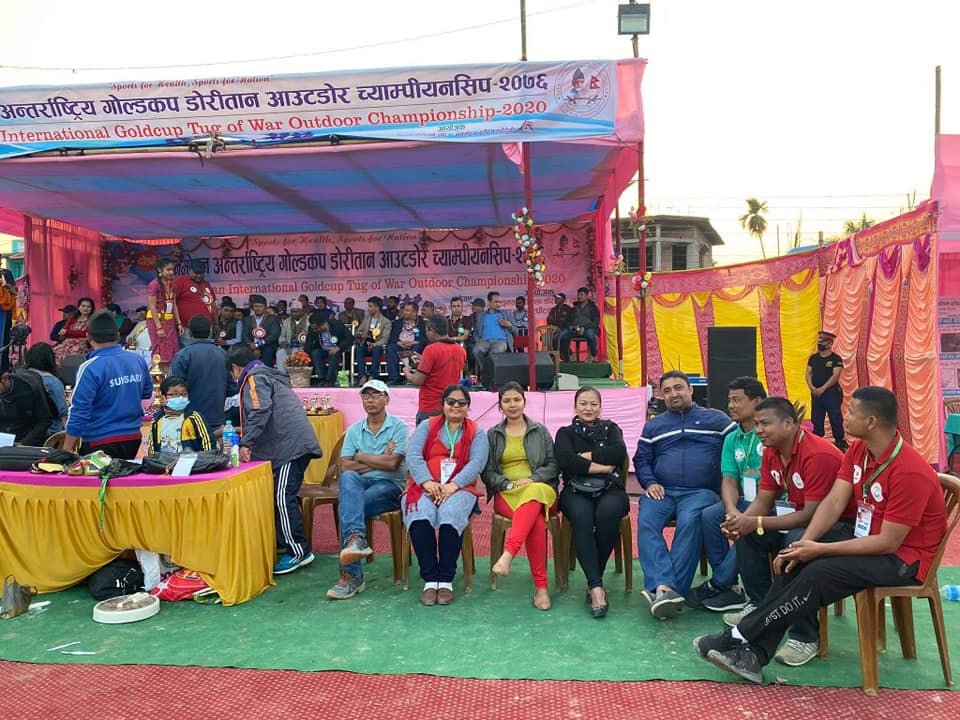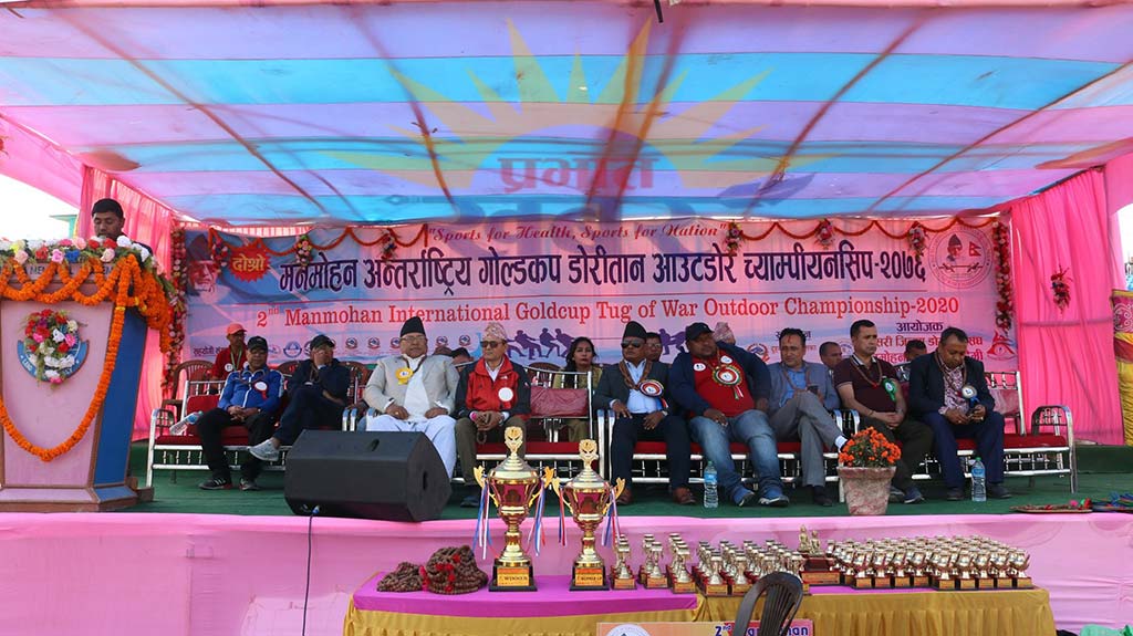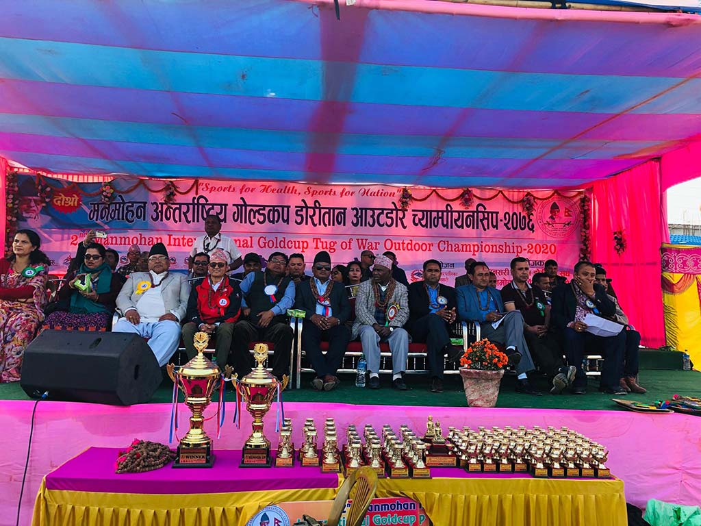 त्यसैगरी दोस्रो मनमोहन अन्तर्रा्ष्ट्रिय गोल्डकप डोरीतान आउटडोर च्याम्पीयनसिप प्रतियोगिताको पुरस्कार वितरण कार्यक्रमको प्रमुख अतिथिमा रहनु भएका पुर्व सामान्य तथा प्रशासन मंन्त्रि माननिय लालबाबु पण्डितले पनि सम्पुर्ण खेल प्रेमिहरुलाई शुभकामना दिंदै दुहबी नगरपालिका खेल क्षेत्रमा एक छुटै पहिचान बनाएकोमा नगरबासीहरुलाई शुभकामना दिनुभएको छ । साथै डोरीतान खेललाई आफुले गर्न सक्ने सहयोगको वचा गरेको आयोजकले जानकारी दिएको छ ।