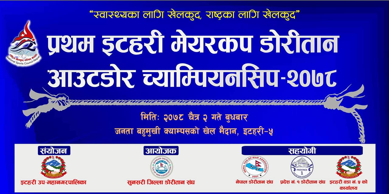 Sunsari District Tug of War Association organized First Mayor Cup Tug of War Aompetition in Itahari Sunsari. Competition coordinator Ashok Kumar Chaudhary says that the Tug of War competition in Itahari is completed successfullly and won by Budhiganga Team, while Mikhlajung teams comes as runnerup. The winner team was awarded cash prize of Rs. 40000 and Runnerup Rs. 20000.