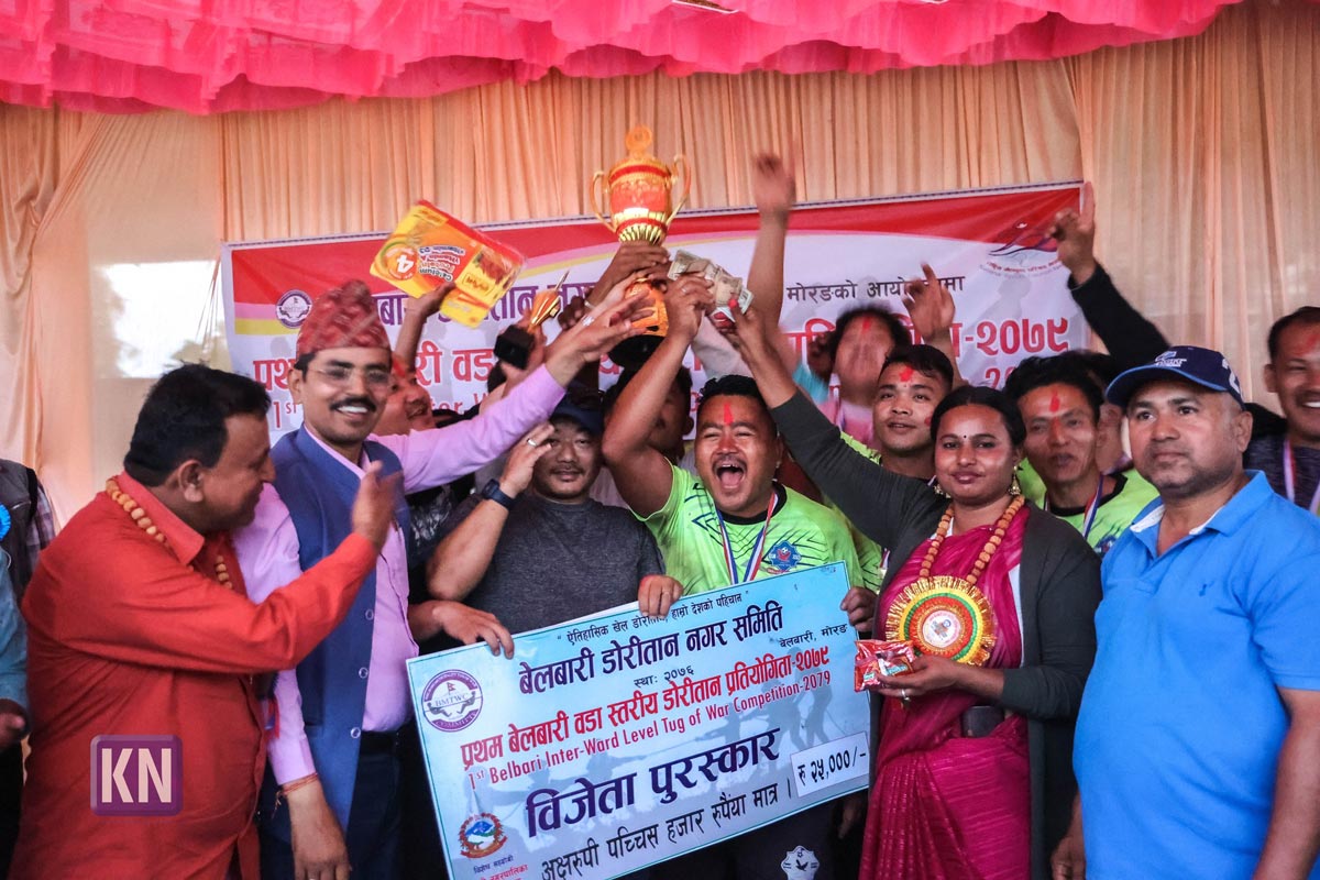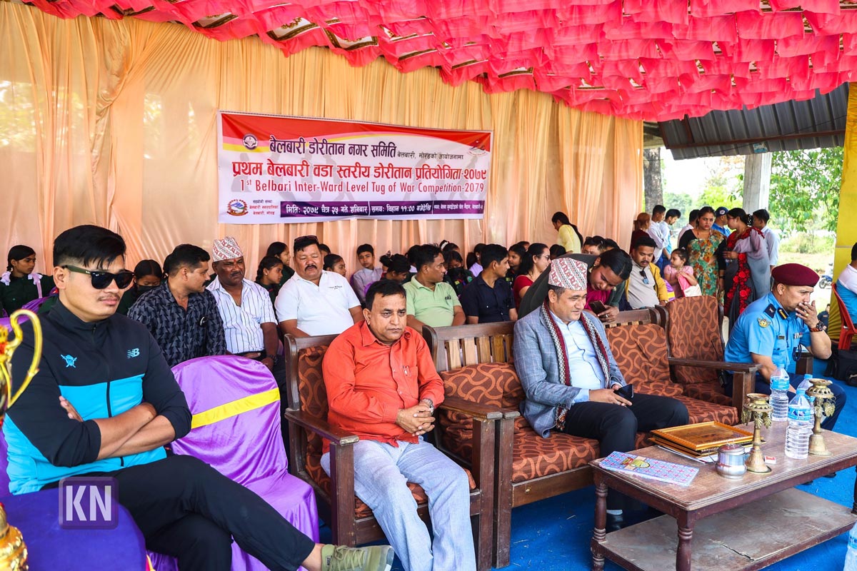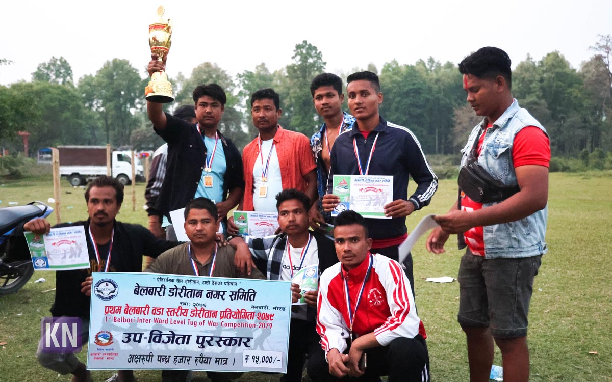 बेलबारीमा वडा स्तरीय डोरी तान प्रतियोगिता सम्पन्न भएको छ । बेलबारी डोरीतान नगर समितिले आयोजना गरेको प्रतियोगितामा बेलबारी नगरपालीका भित्रका सबै वडाहरु सहभागी भएका छन् । खेलको विजेता पुरस्कार रु २५ हजार नगद, ट्रफी, मेडल र प्रमाणपत्र रहकोे थियो । उप विजेता पुरस्कार रु १५ हजार नगद, ट्रफी, मेडल र प्रमाणपत्र , बेस्ट टिम तथा अनुशासित टिम अन्तर्गत रु. ५, ५ हजार नगद, ट्रफी र प्रमाणपत्र र बेस्ट कोच अन्तर्गत रु.२५०० नगद, ट्रफी र प्रमाणपत्र रहकोे थियो ।